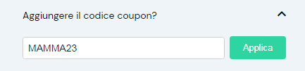 Ti basterà cliccare sul pulsante qui sotto e inserire nel carrello il codice MAMMA23 o MAMMA10 come vedi nell’immagine